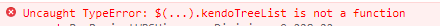 });however when i run the code above it throw me error "Uncaught TypeError: $(...).kendoTreeList is not a function"