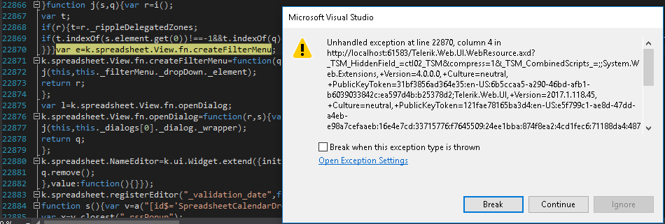 Unhandled exception at line 542, column 1 in http://localhost:61583/Test.aspx