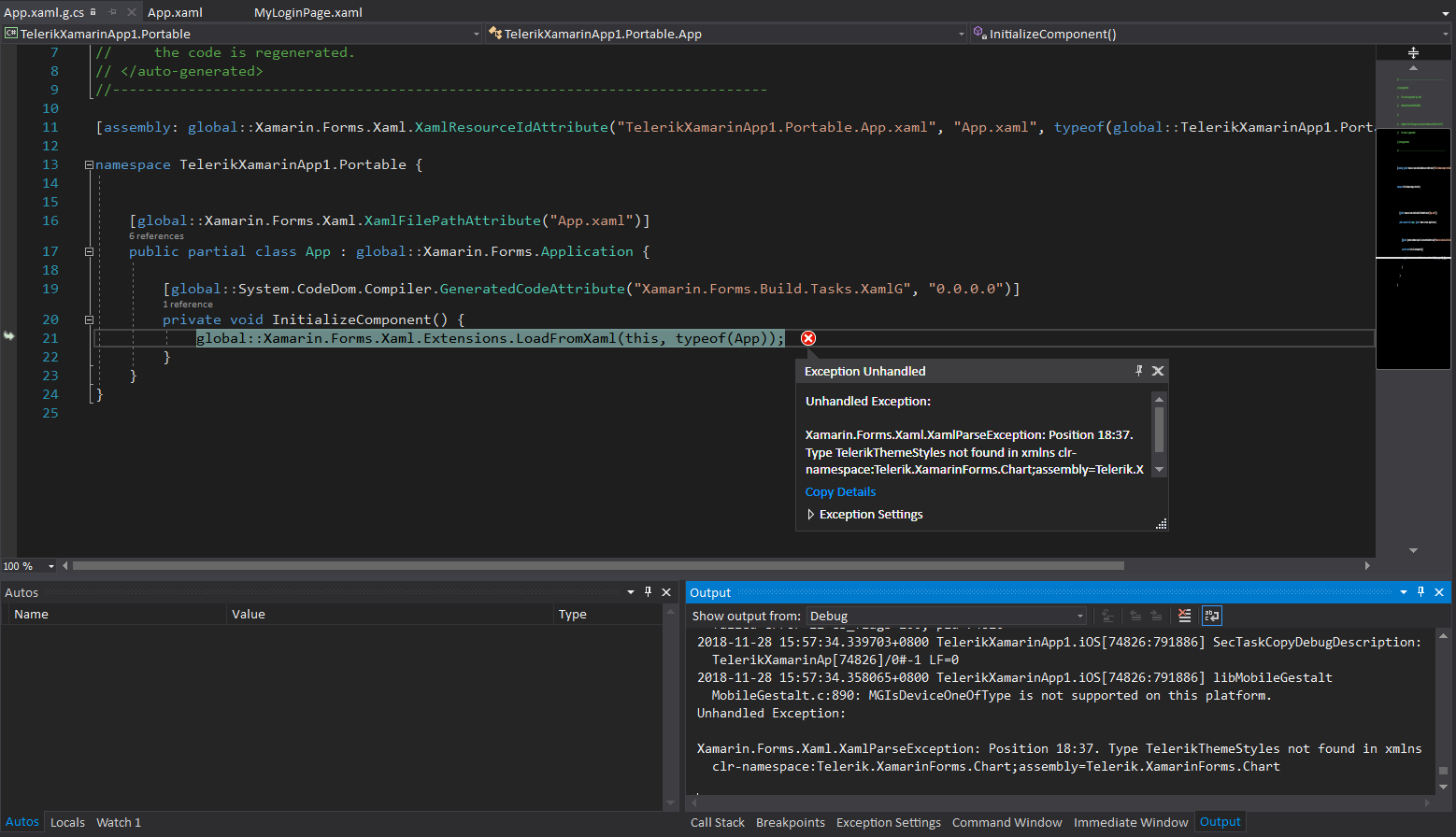 Xamarin.Forms.Xaml.XamlParseException: Position 18:37. Type TelerikThemeStyles not found in xmlns clr-namespace:Telerik.XamarinForms.Chart;assembly=Telerik.XamarinForms.Chart