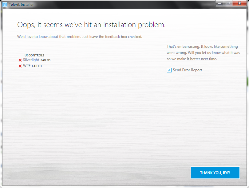 I've got a problem installing telerik ui controls. I've spent my whole day searching for the reason of the problem, but found nothing.