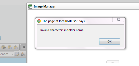 This error is changed to NonExistingFolder in the newer versions of the control and you can get it when clicking on an image in the content area (which is not available in the folders allowed in the Image Manager) and pressing the Image Manager button.