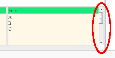 Notice how in column two using the scrollbar you can only reach J instead of O.