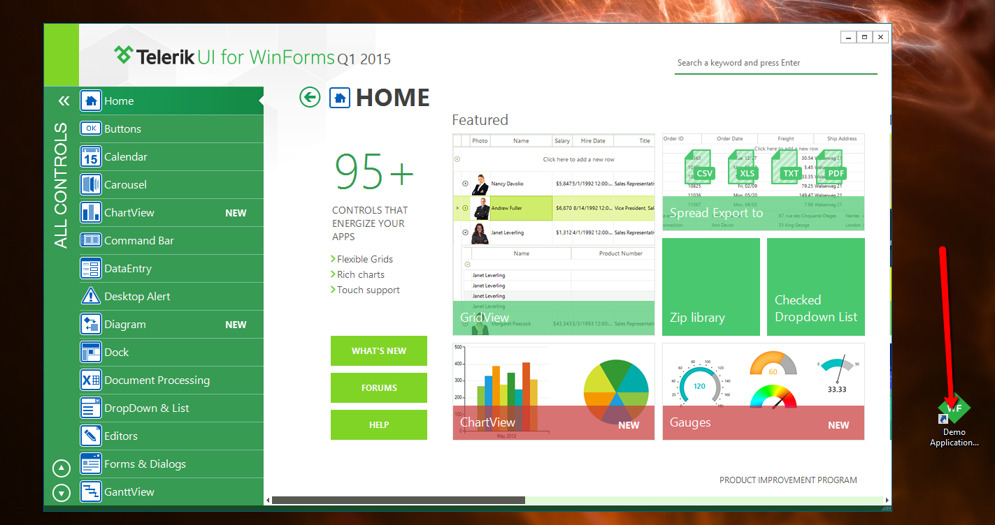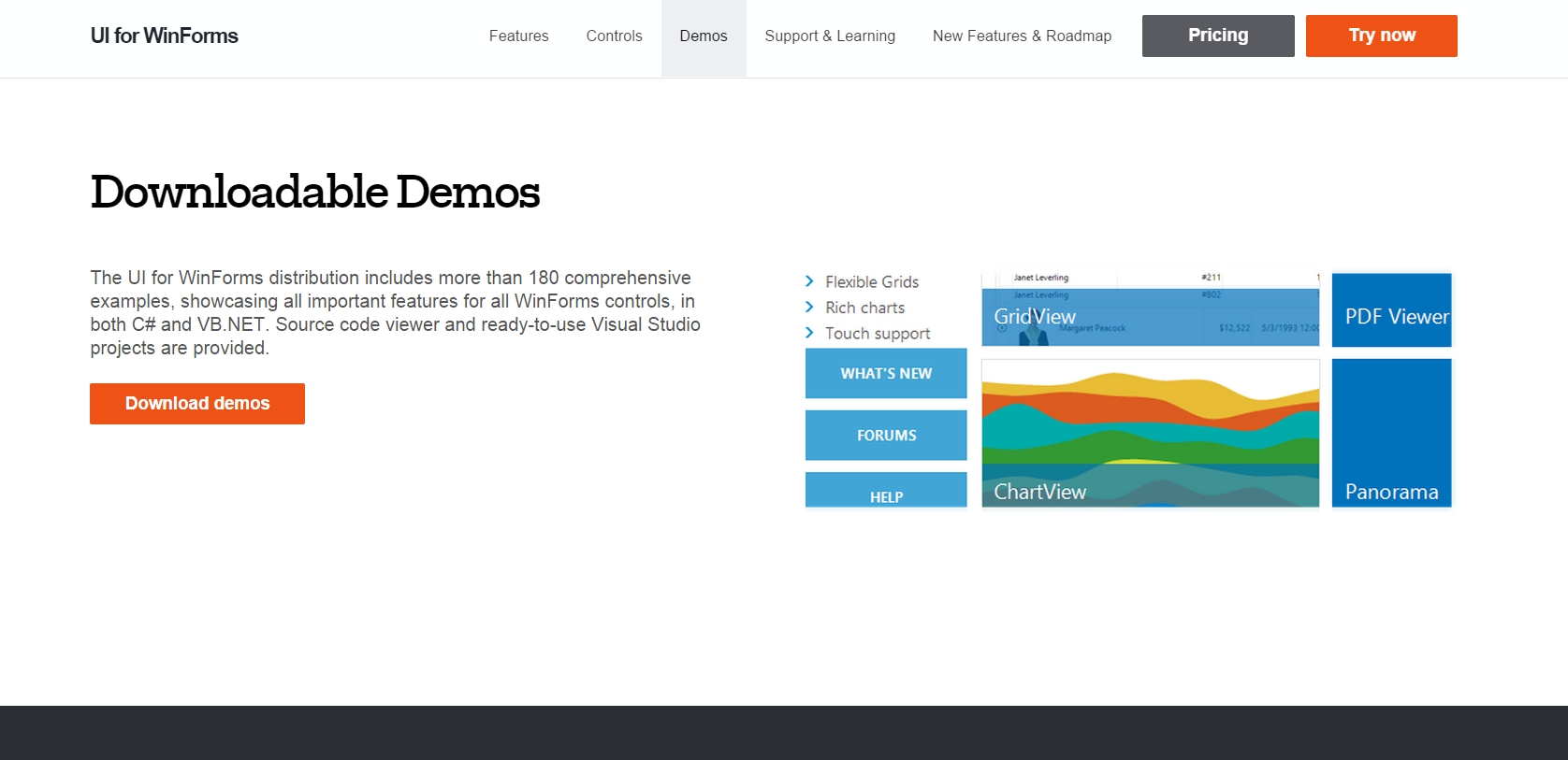 I tried to use the various online examples for WinForms. I can't get any of the examples to run because they are made for VS2008 and equivalent old version of Telerik WinForms. Even after migrating the examples they are full of compiling errors due to library changes. No fun.