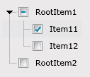 I added every item in code. I also set the CheckState property of the children to On or Off. Is there an easy way to update the CheckState of the rootitems? Changing the CheckState of the children does not trigger for and update of the parent.
