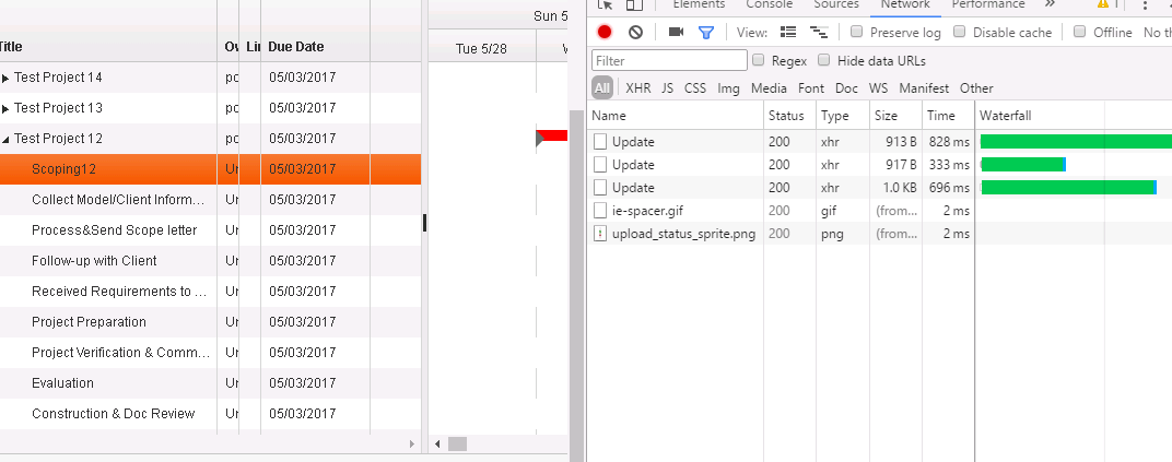 The update event is getting triggered multiple times when i am trying to update a single task inline. I want the update event to get triggered only once for a single task update.I have also attached the image which indicates the multiple event trigger for the inline edit of the highlighted child task.Can anyone help me in where i am going wrong or what has to be done to prevent the multiple event triggers.