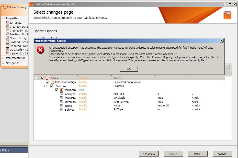I looked through some of the generated files and didn't see any references to the NodeType class. This is a table that exists in the database, but it doesn't have any relationship to the table or domain model object I'm working with.