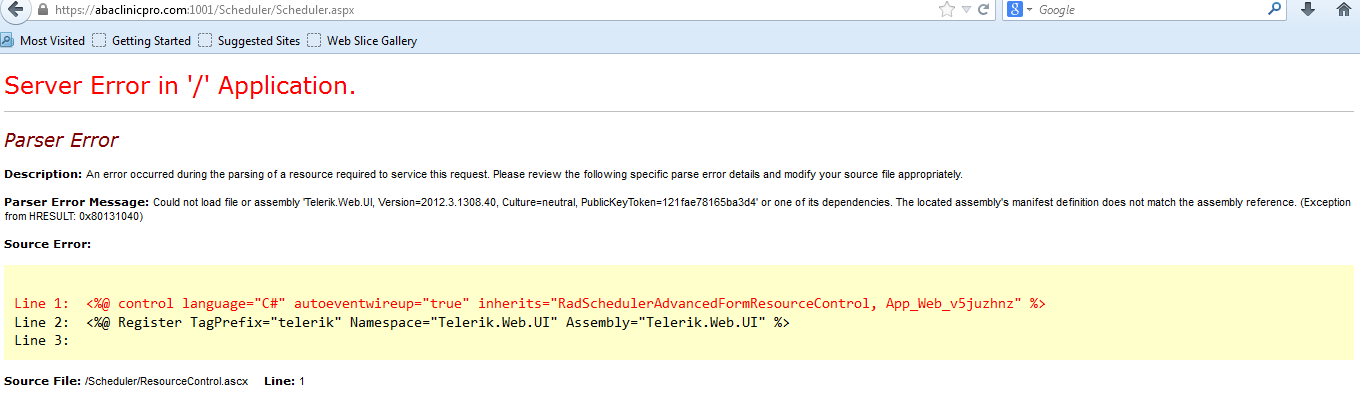 Could not load file or assembly 'Telerik.Web.UI, Version=2011.2.915.40, Culture=neutral, PublicKeyToken=121fae78165ba3d4' or one of its dependencies. The located assembly's manifest definition does not match the assembly reference. (Exception from HRESULT: 0x80131040)