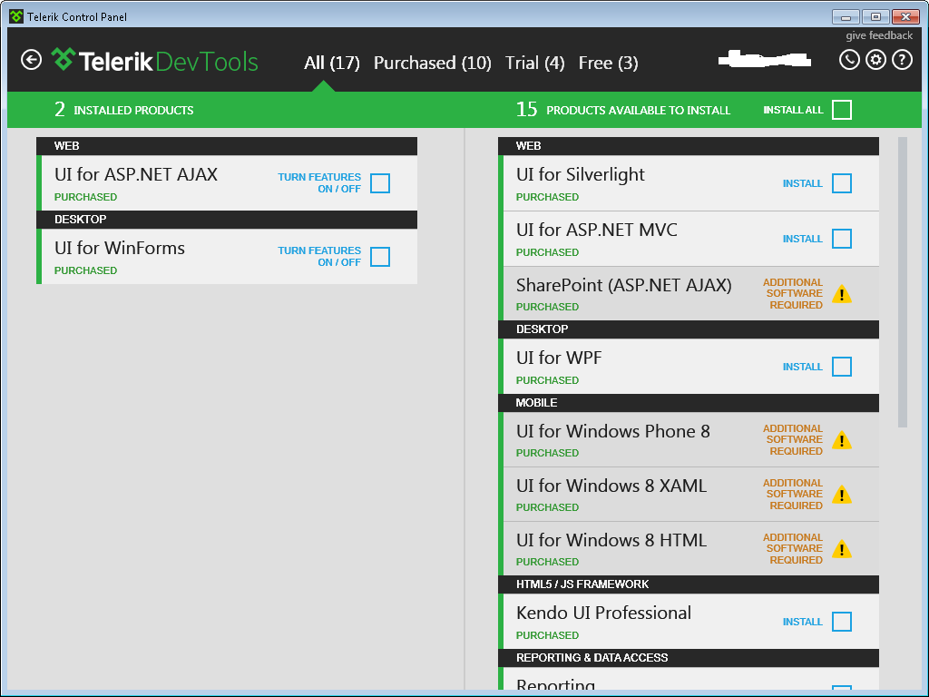 After update, I don't see any Winforms menu under the Telerik menu. Also, I'm unable to add new Winforms to my project. The only thing I can think of that caused this upgrade to be different than all the others is me uninstalling VS 2012 prior to upgrading VS 2010.