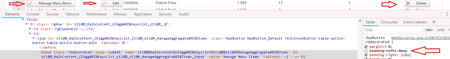 For your reference, please find the attachment, which shows before and after hiding the " .RadButton .rbDecorated " padding-left property.