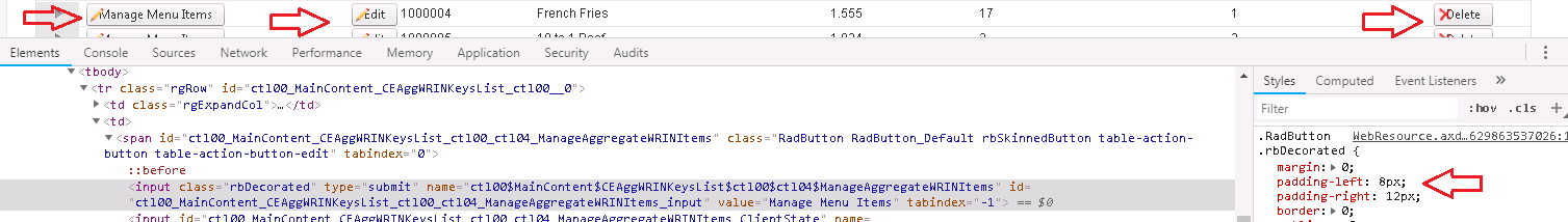 Please also examine this forum for another idea - https://www.telerik.com/forums/buttons-overlapping-in-table-cells.
