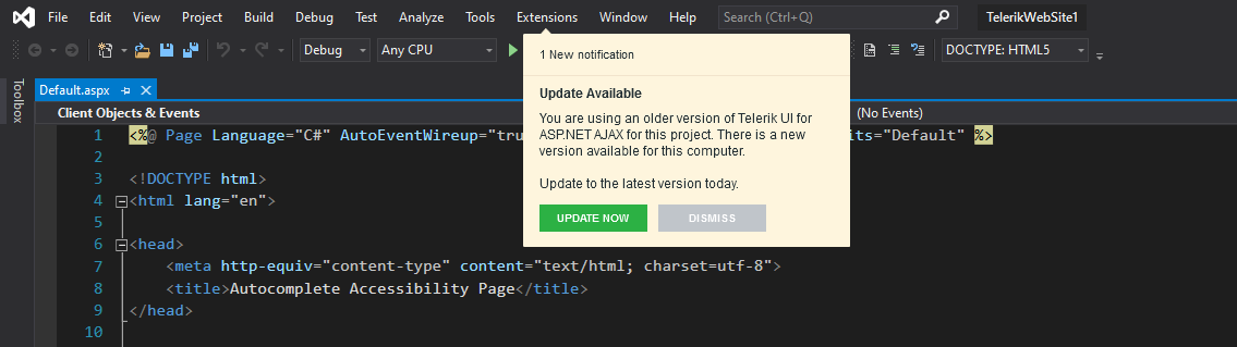 When I try to run an upgrade on my ASP.NET AJAX project in Visual Studio 2013, the only version showing up is the current version that the project is already using "2021.3.914.45" I'm trying to upgrade to UI for ASP.NET AJAX R1 2022 SP1 (version 2022.1.302). How do I get the newer versions to show up as a selection to upgrade to?