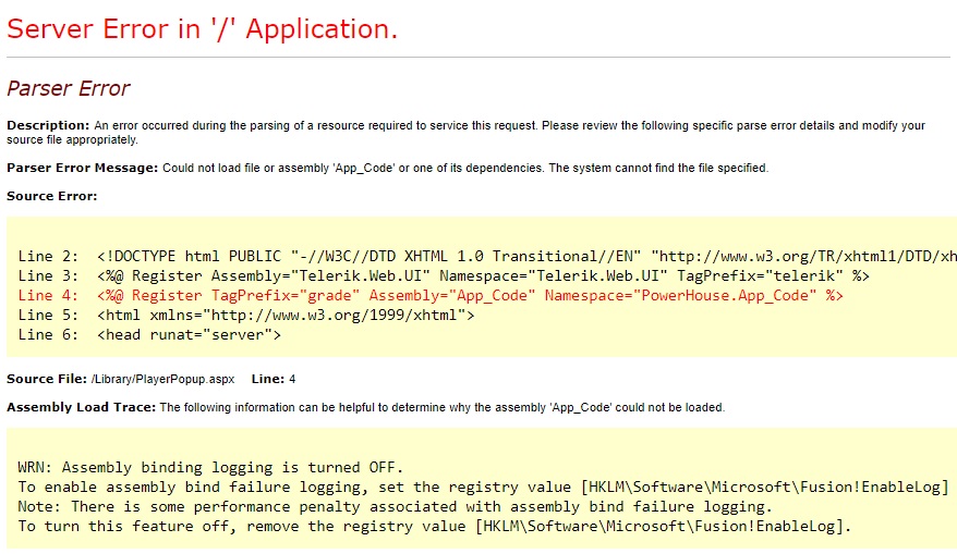 I recently upgraded Ajax UI controls and Reporting to the latest version. Trying to pull up the pages with Telerik controls products an error seemingly unrelated to Telerik - but mismatched versions produced seemingly unrelated errors a few months back on a Telerik upgrade.