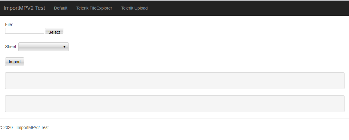 <%@ Page Title="Telerik Upload" Language="C#" MasterPageFile="~/Site.Master" AutoEventWireup="true" CodeBehind="TelerikUpload.aspx.cs" Inherits="ImportMPV2_WebTest.TelerikUpload" %><asp:Content ID="BodyContent" ContentPlaceHolderID="MainContent" runat="server"><asp:ScriptManagerProxy ID="ScriptManagerProxy1" runat="server"> <Scripts> <asp:ScriptReference Path="Scripts/PageScripts/TelerikUpload_aspx.js"></asp:ScriptReference> </Scripts></asp:ScriptManagerProxy><div style="margin:20px"> File: <telerik:RadAsyncUpload AllowedFileExtensions="xlsx" EnableInlineProgress="true" HttpHandlerUrl="~/UploadHandler.ashx" ID="RadAsyncUpload1" MaxFileInputsCount="1" MultipleFileSelection="Disabled" OnClientFileSelected="OnClientFileSelected" OnClientFileUploaded="OnClientFileUploaded" OnFileUploaded="RadAsyncUpload1_FileUploaded" runat="server"> <FileFilters> <telerik:FileFilter Description="Excel Files(xlsx)" Extensions="xlsx" /> </FileFilters> </telerik:RadAsyncUpload></div><div style="margin:20px"> Sheet: <telerik:RadComboBox ID="SheetCb" name="SheetCb" runat="server" OnClientLoad="sheetCbLoad"> </telerik:RadComboBox></div><div style="margin:20px"> <telerik:RadButton AutoPostBack="true" runat="server" Text="Import"> </telerik:RadButton></div><div style="margin:20px"> <pre> <asp:label id="lblUploadResults" runat="server"></asp:label> </pre></div><div style="margin:20px"> <pre> <asp:label id="lblSSISResults" runat="server"></asp:label> </pre></div></asp:Content>