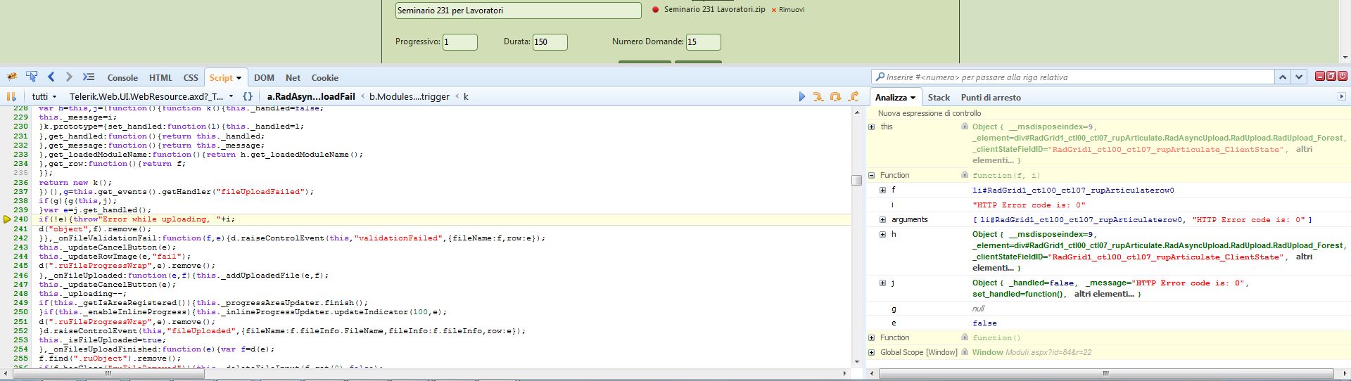 Hi, we have a grid with a RadAsyncUpload in EditFormSettings. Is from approximately 2 weeks that RadAsyncUpload don't work fine.