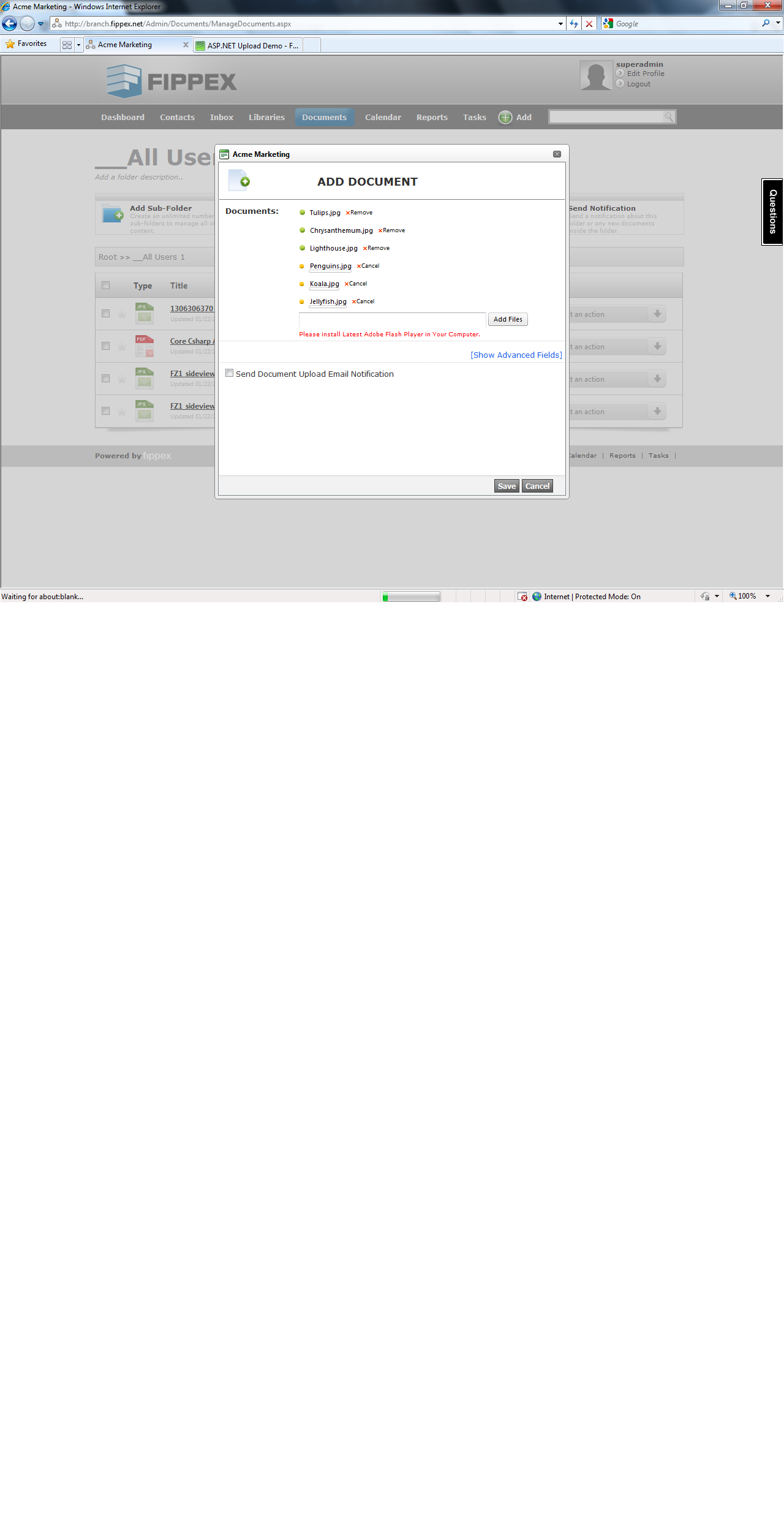 Upload Progress bar is not showing on IE 8