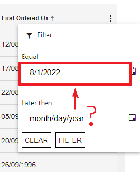 2. I reopened the date range filter but the second field is now empty and the value went into the first field