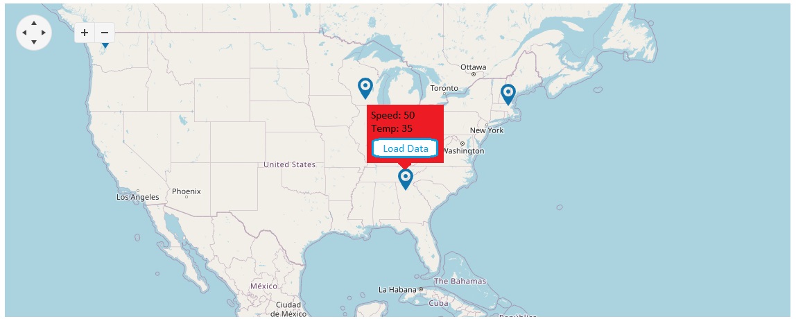 Based on the image you attached, I assume you would like to display a button inside the map's tooltip. While this is technically possible, it is not practical, as the tooltip will disappear as soon as the mouse leaves the marker, preventing users from clicking the button.