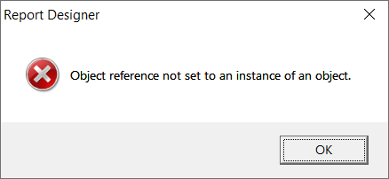 But then on starting the Report Designer shows errors (5. StartError.png, 6. ObjectReference.png).