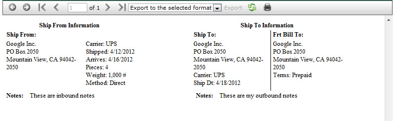 When this information is displayed in the Web Report Viewer, I see all of the information; however, there should be an empty line between the last line of the address and the "Carrier". In the Web Report Viewer, this does not occur. In addition, when you print the report (or export to PDF -- the same thing), the empty line occurs between the last line of the address and the "Carrier" (which matches the user function) BUT the Ship Dt goes misssing.