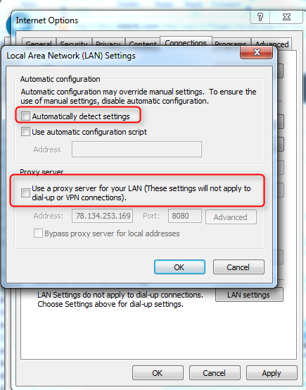 Do you use some IE proxy? If so please set IE to NOT use any proxy in normal use, and to NOT have the "automatically detect" setting checked (see the attached screen shot).