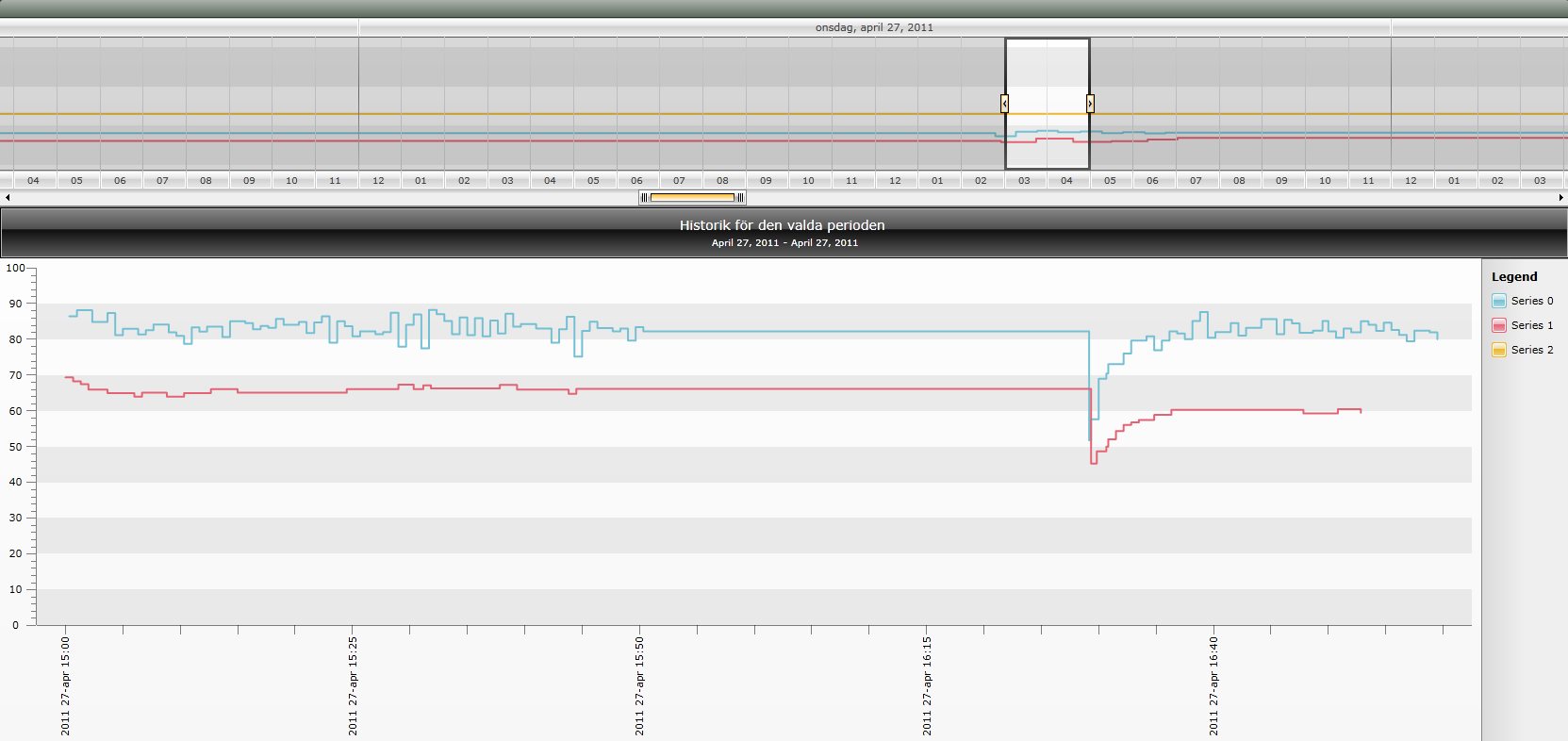 I did get stuck on one problem, using a radchart as content for the timebar. We're on need of displaying multiple series, containing a lot of data, in the timebar so a sparkline is out of the question. Using a chart instead was easy and worked out really well, but the display of it is sadly not accurate.