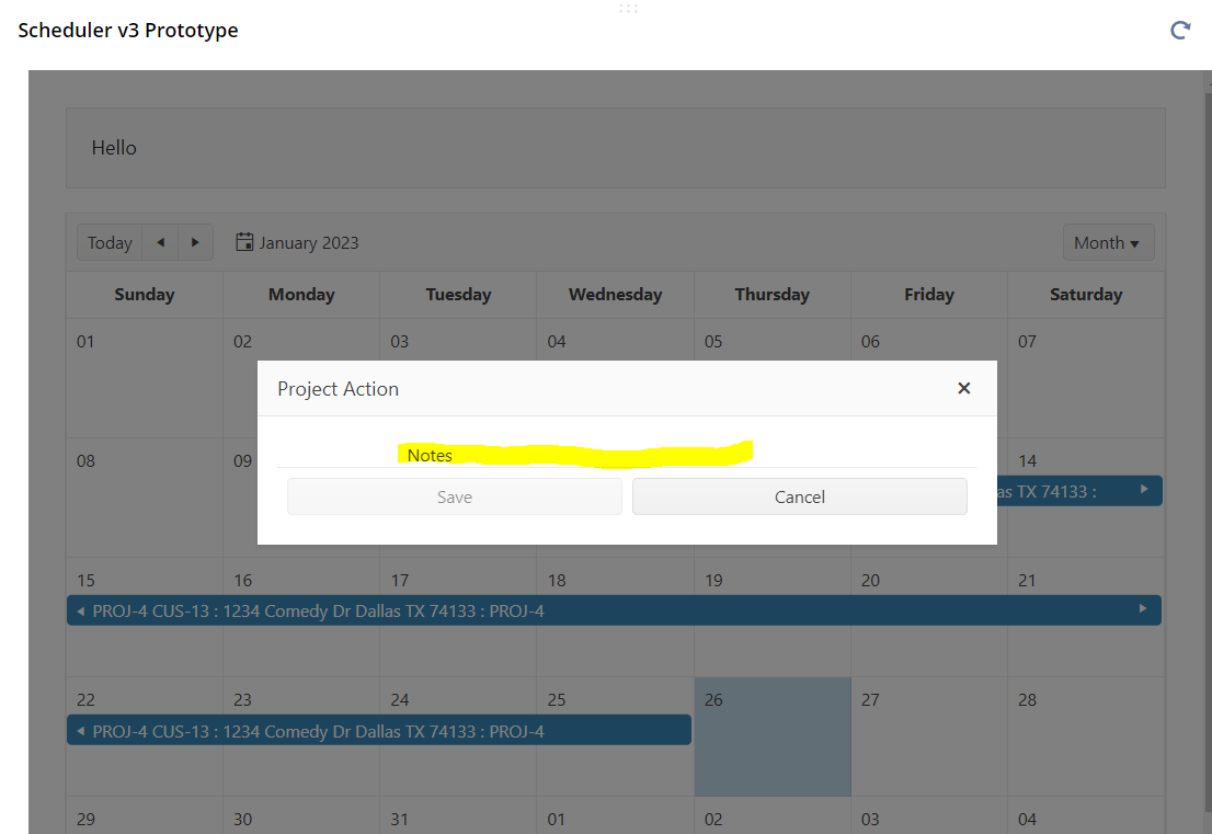 We are trying to customize the scheduler form editor, but the field is not showing up. Any ideas why? Screenshots of the SchedulerForm's editor and what we see in the UI below: