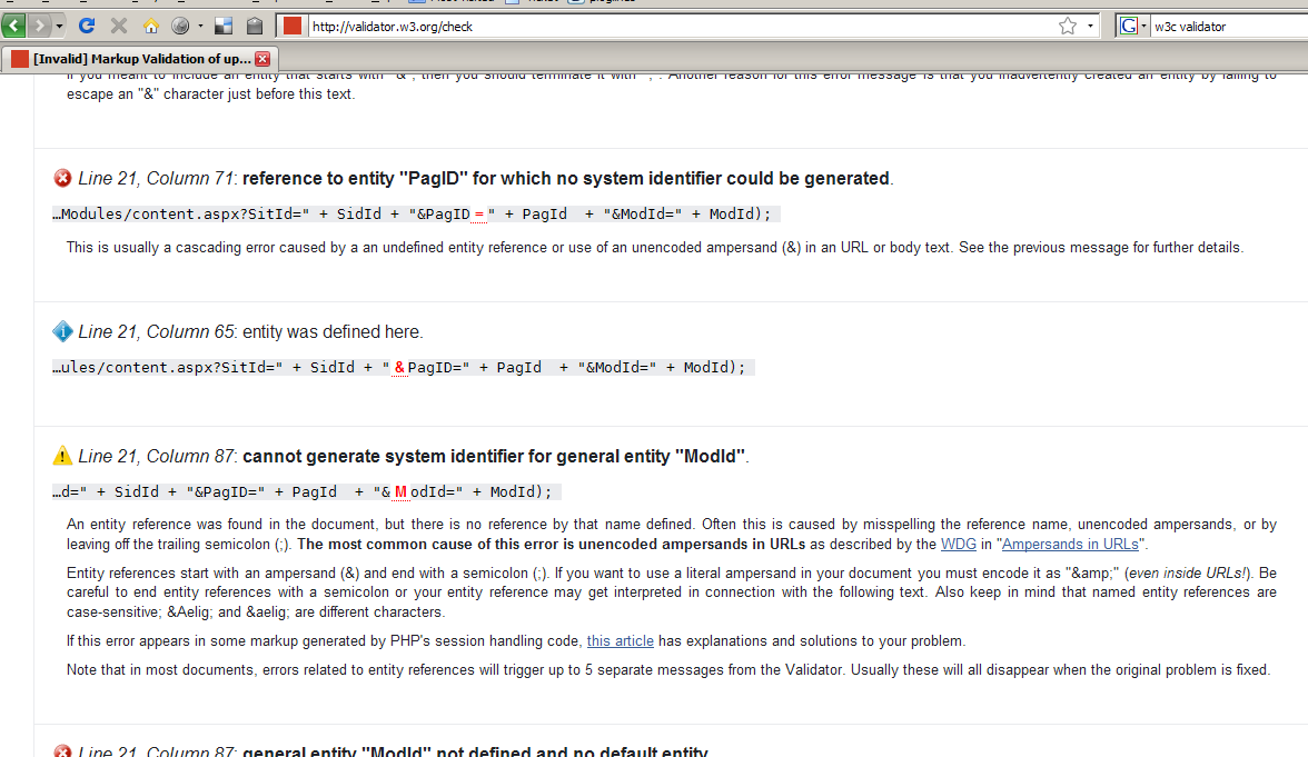 But. When i'm trying to validate the site by w3-validator i'm getting errors for using ex. &PagID instead of &PagId.