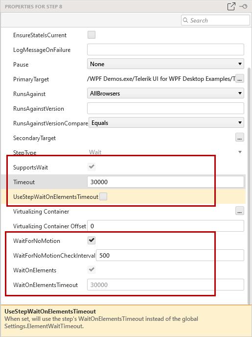 Thanks for your reply, but the wait/verify step properties don't appear to handle the scenario I fairly regularly see in my WPF app testing.