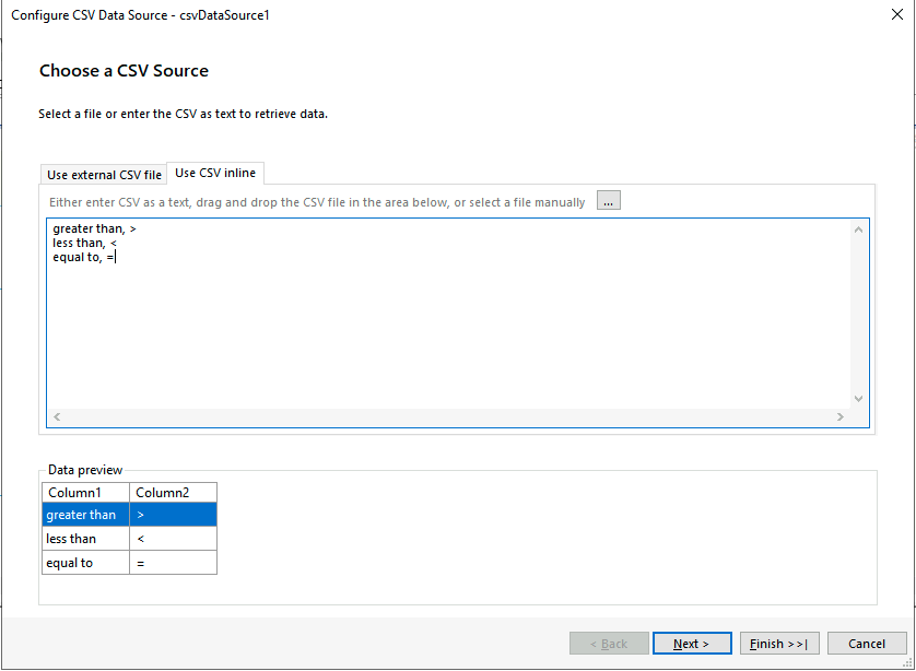 Then you can use that CSV data source within your parameter and then use the parameter value in your textbox. See if that is the sort of result you're expecting.