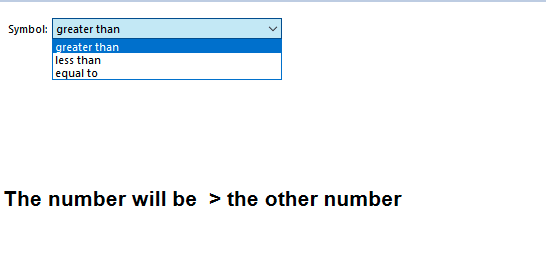 How do I create a dropdown with the options of: greater than >, less than <, or equal to =, then have a textbox for the value?