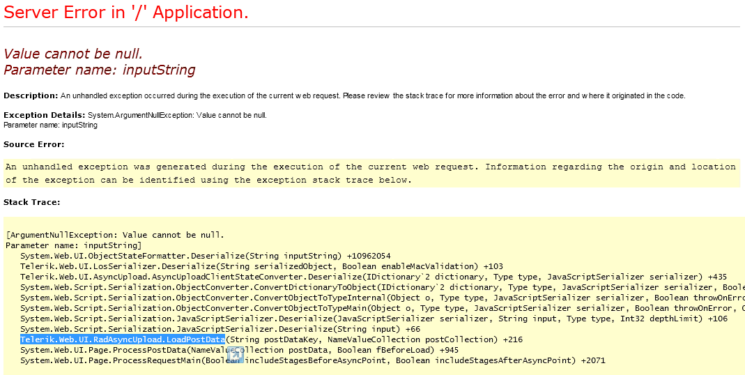 The attached file below shows an exception when a post-back is performed, but everything was handled client-side using the custom HttpHandler. Should the file collection client-side be cleared before post-back?