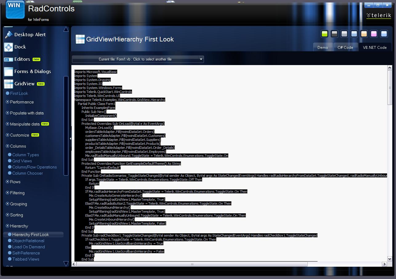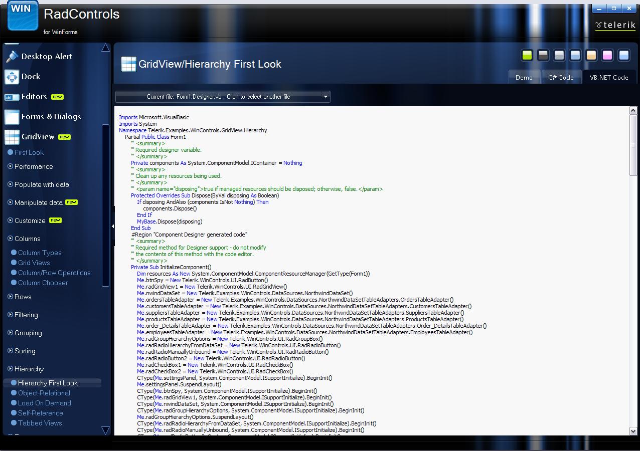 There are some examples in RadControls for WinForms Q2 2011 Demos (I have attached a picture) and I cannot use those examples.