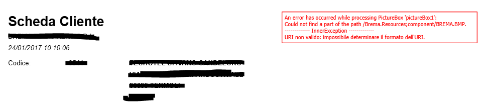 If the error occurs in WPF Report Viewer as well verify that the path used to set the PictureBox's value can be resolved correctly at run-time - Pack URIs in WPF.