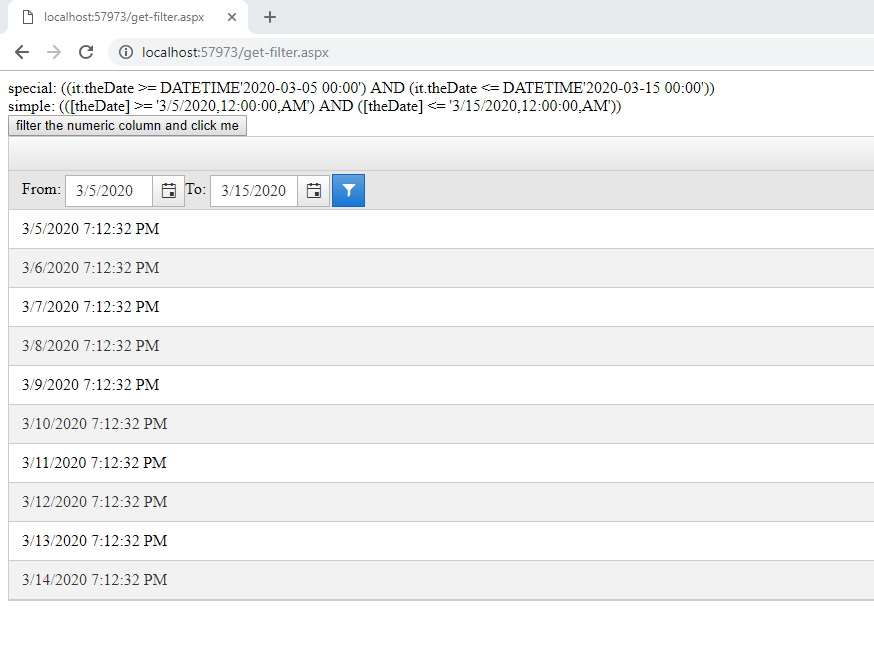 If you maintain that the Between filter only works correctly on the DateTime columns then why is it filtering in my case? Is there another way to grab the partial query?