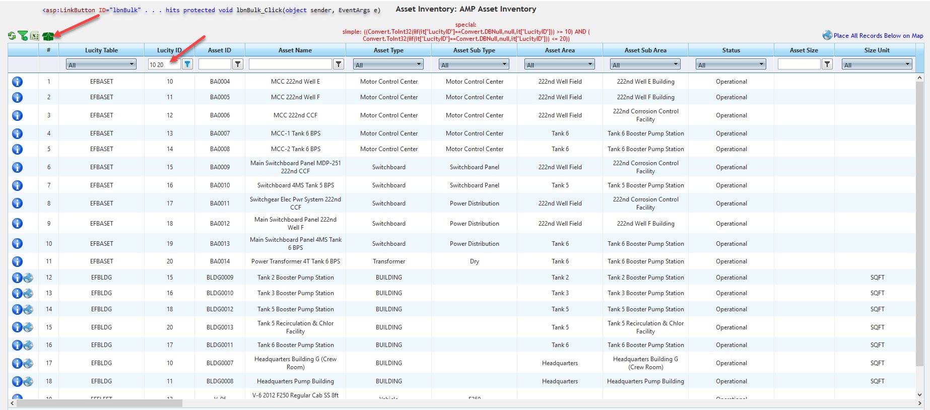 I'm aware of the Between filter on the DateTime column - I use it extensively in many of my projects. What I need here though is to use the Between filter on a numeric column or a GridBoundColumn with DataType set to integer. You say that the Between filter is only available on the DateTime columns but I am using it on an integer column and it filters fine (See attached image). What I need is to grab the partial query through the GetEntitySqlFilterExpression. Right now this expression brings back an empty string. As I pointed out above, I can get it through the FilterExpression but there is no easy way to remove all the unwanted jargon around the actual query. From my example above, what I really want is " AND InstallationYear >= 1974 AND InstallationYear <= 2000 ".