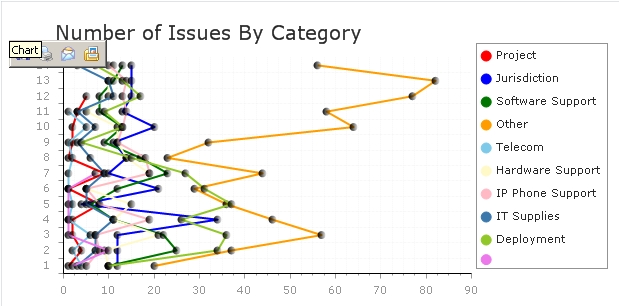 I'm trying to produce a Line chart that will show me the evolution of the amount of issues for each category over time.