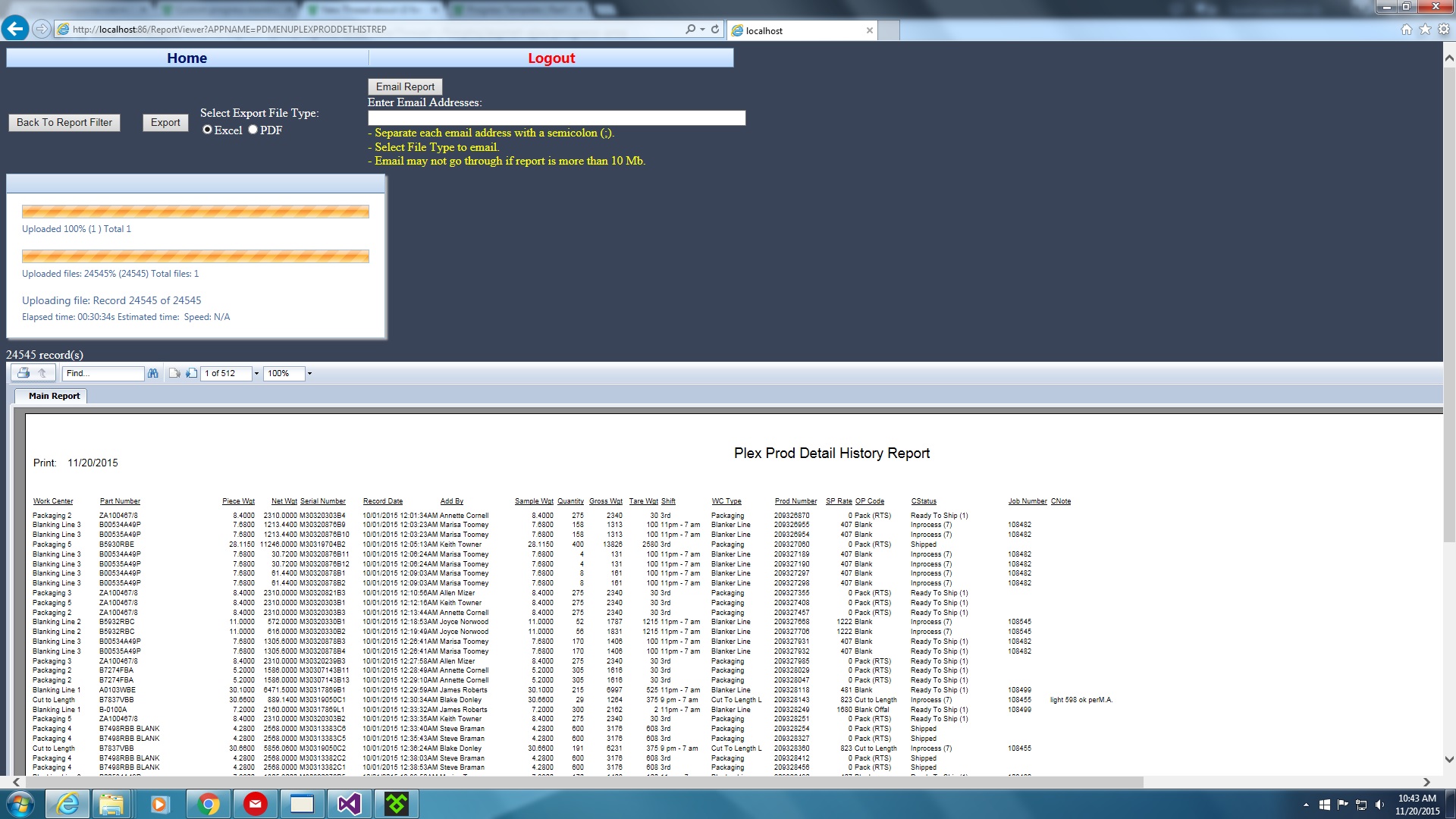 - The text in the ProgressArea still shows "Uploading Files". This has nothing to do with uploading files. The export gets data from the database table and puts it in a file on the client side.