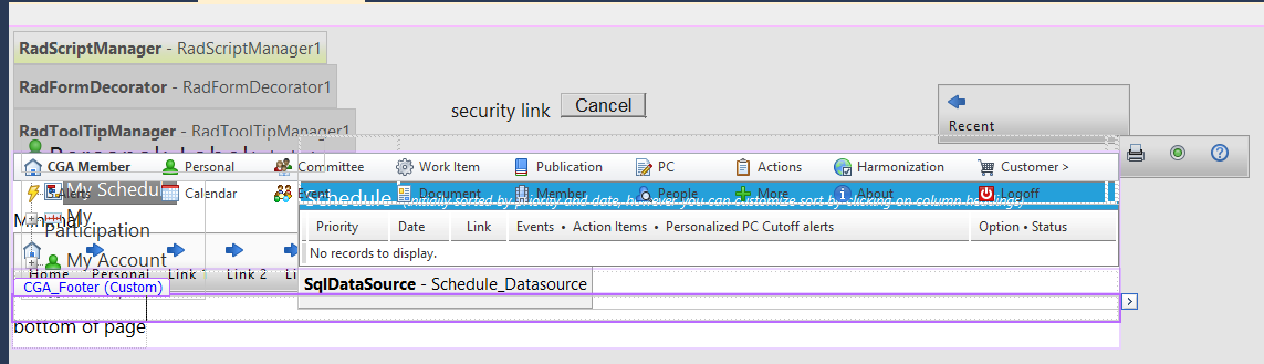 In the example, the menu appears at the top, as expected. The grid jammed-up against it, and attempting to select the Item Editor just selects the master page zone.