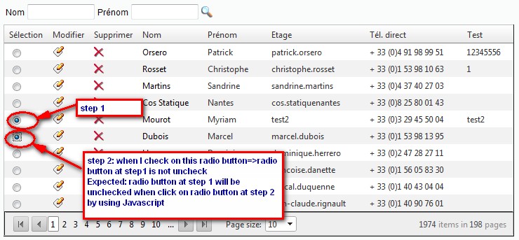 And then I continue click on the other RADIO Button=> tat Radio button is checked too but the previous Radio button is still Check.