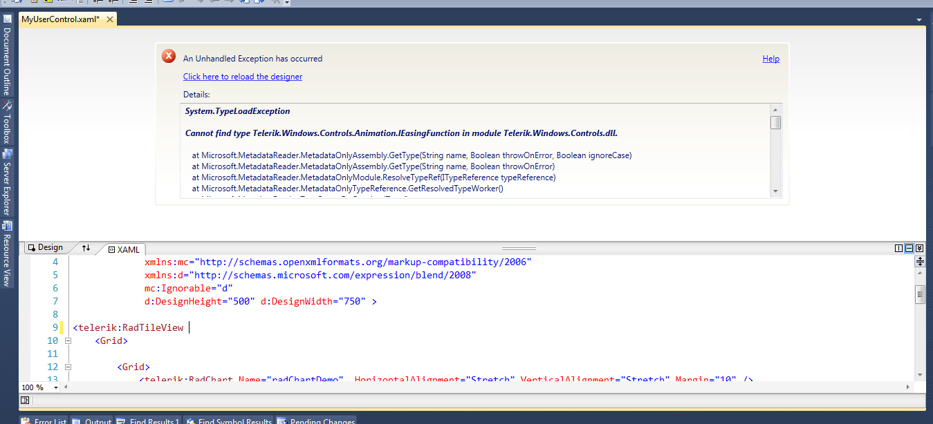 "Cannot find type Telerik.Windows.Controls.Animation.IEasingFunction in module Telerik.Windows.Controls.dll."