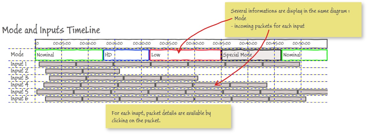 I need to display incoming packets from communication ports, in a time line, along with other informations (for example a port “Mode”, representing the actual state of the port).
