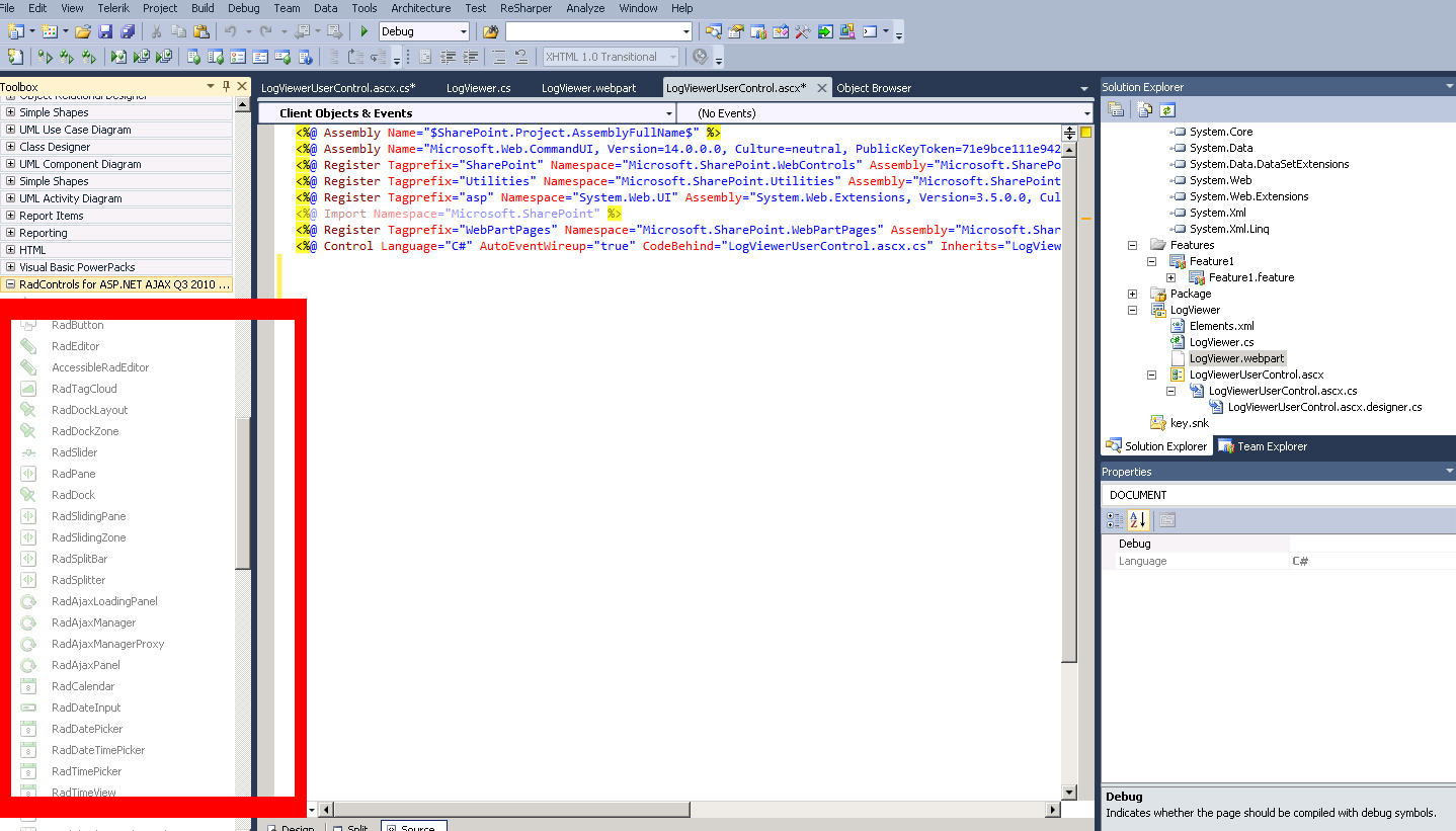 Is it possible to use the telerik radcontrols through an empty Sharepoint project?