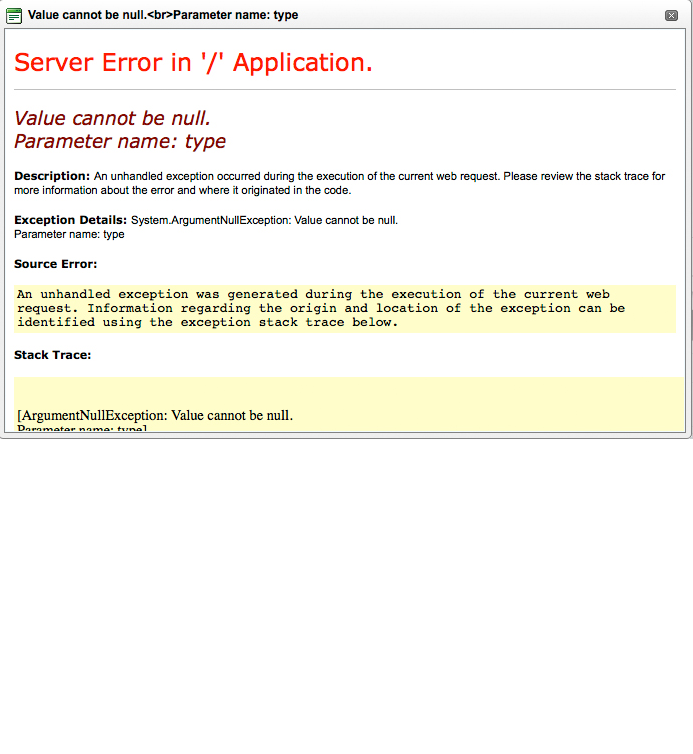 Exception Details: System.ArgumentNullException: Value cannot be null.