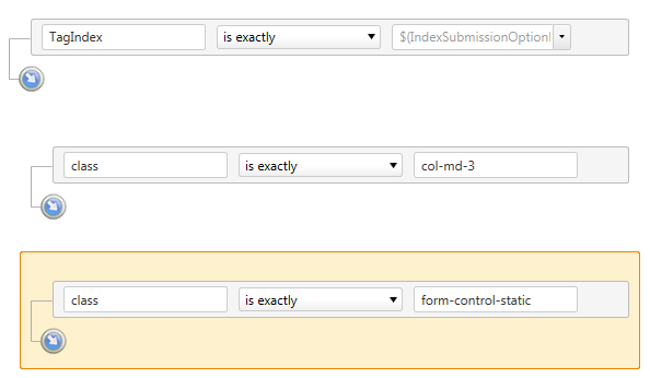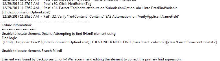 I created a test step to extract the TagIndex from the label, so that I could get the correct containing div, and then I tried to use that Index in a find for the p but it doesn't work. I'm attaching the files that show the definitions of both elements, the part of the log file I can show you, and the part of the dom I can show you.