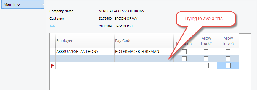 * For each row, both the Employee and Pay Code MUST be selected from the respective combobox columns for the row to be valid.