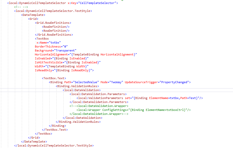 other for value [data template changes depending on property] so I have overridden selecttemplate method . Based on the item input I have choosen the datatemplate.