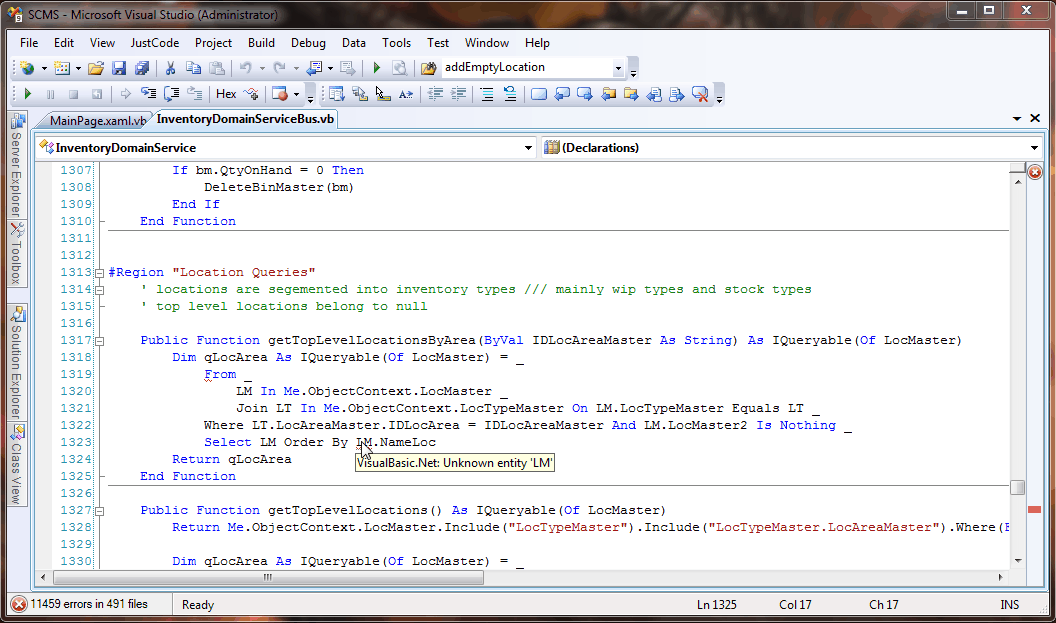 | Dim qLocArea As IQueryable(Of LocMaster) = _ |