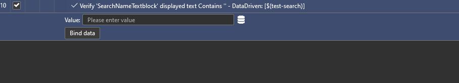 'Fail' : 10. Verify 'SearchNameTextblock' displayed text Same ' ' - DataDriven: [$(test-search)]