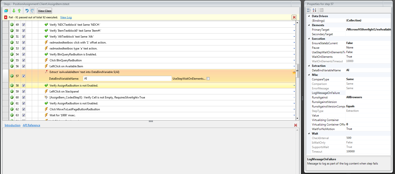 I am using an extract step to grab the current value of an available item, AI. Later on in the test, I am using a verify step with the DataBindVariableName $(AI) to compare this item with the extracted item to see if they are the same. When running my test, it fails saying that my verifying item is not the same as the extracted item. I know that they are the same so I did a little research. When it is running the extract step, it is always using the item that was used when I recorded this step and not extracting the current item during each run. Am I missing something to make the step extract the value at the time of each time the test is run?