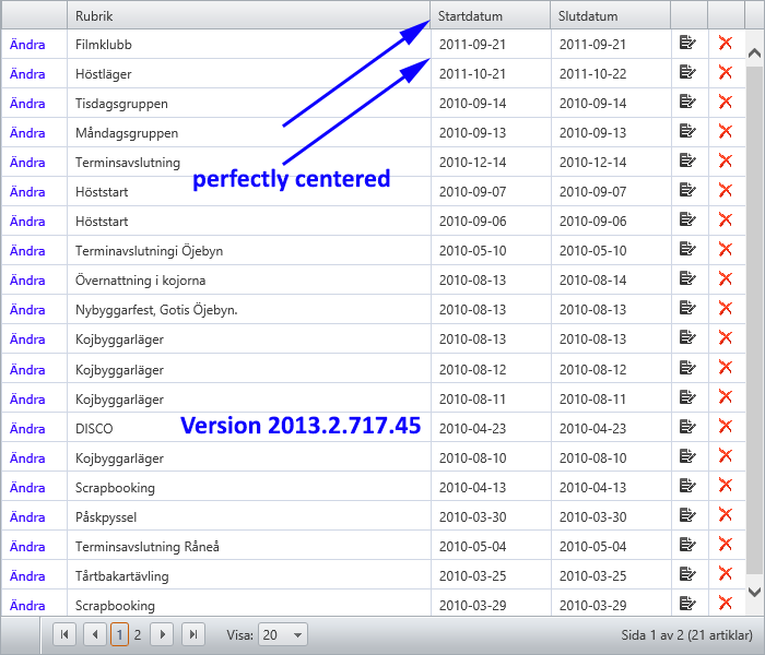 I am writing you in order to inform you that we managed to observe misalignment problem in the project Sandra Garcia provided in the support ticket opened on the same matter. However, this problem is already fixed and the fix will be included in the upcoming SP1 version of the controls which will be released next week. I suggest you download it when the version is released and examine your project with it to see if the issue you are facing will be resolved. In case the problem still persists I will ask you to isolate it in a sample runnable project and send it to us via support ticket. We will examine it further and will get back to you with additional information.